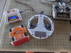 Project Liftoff - September 2021 (rev 5.0), pictured before the September 2021 event. The bot went on to go undefeated, winning the 3lb division with 4 KOs and 3 judges decisions.